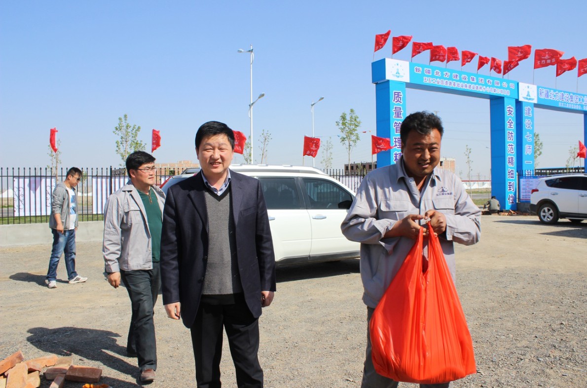 (通迅員:虞俐瑾 王曉瑞 邵小晶)在“五一”國際勞動(dòng)節期間,北方建設集團副總經(jīng)理鄭小鵬深入129團城鎮道路工程、五五工業(yè)園道路基礎工程、青北公路項目部,看望慰問(wèn)堅守工作崗位的一線(xiàn)施工技術(shù)人員,為一線(xiàn)職工送去節日慰問(wèn)物品,現場(chǎng)了解他們的工作情況,指導做好施工期間的安全生產(chǎn)等工作,并向他們表達了節日的祝福。