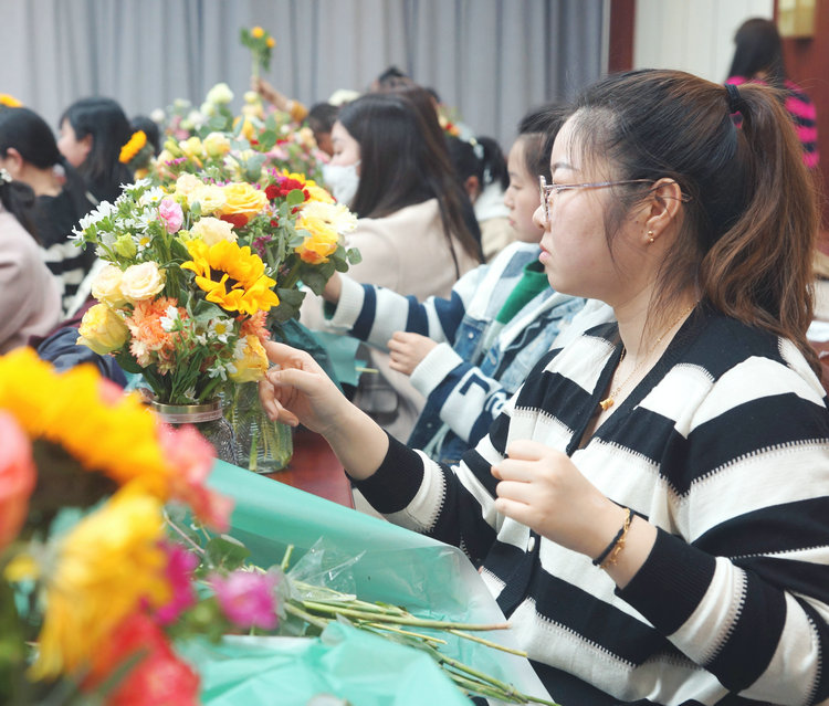 活動(dòng)中,花藝老師為大家介紹了鮮花常識、色彩搭配、插花技巧、保鮮方法等注意事項,對插花的技巧進(jìn)行現場(chǎng)講解和演示。在老師的耐心指導下,大家認真挑選花材、構思造型,選花、去葉、剪接、設計、插花,在一剪一修間,體會(huì )插花的樂(lè )趣。一盆盆細致精美、別出心裁的插花作品展現在大家的面前,充分展示著(zhù)女職工熱愛(ài)生活、昂揚向上、追求真善美的精神風(fēng)貌。在場(chǎng)的每個(gè)人臉上都洋溢著(zhù)幸福燦爛的笑容。